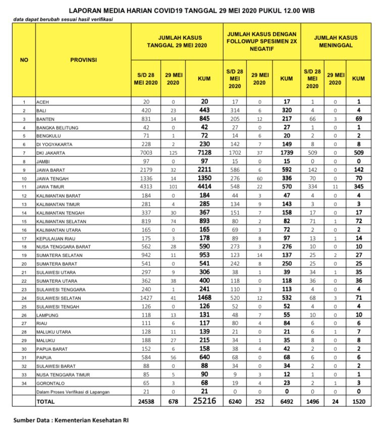 Berikut data sebaran kasus positif corona di 34 provinsi indonesia pada 24 juni 2020. Hari ini pemeriksaan spesimen 19 510. Update sebaran corona di indonesia hari ini senin 2020 juli 2020 tambah 1 693 kasus baru berdasarkan update corona 20 juli 2020 di indonesia pada hari ini terjadi penambahan kasus baik.