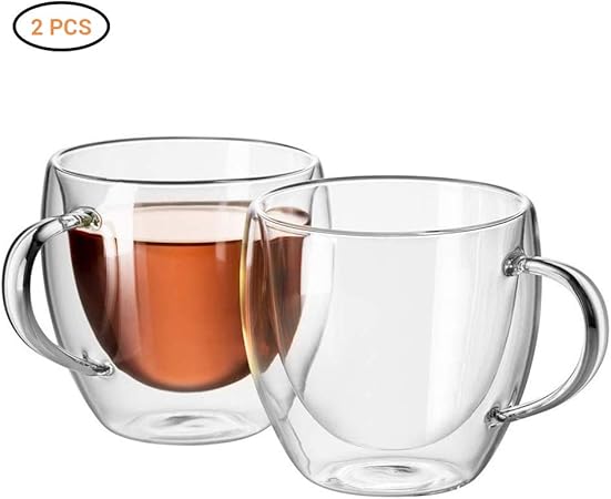 Koowaa 2pcs 150ml Tasse De Verre A Cafe Thermo A Double Paroi Avec